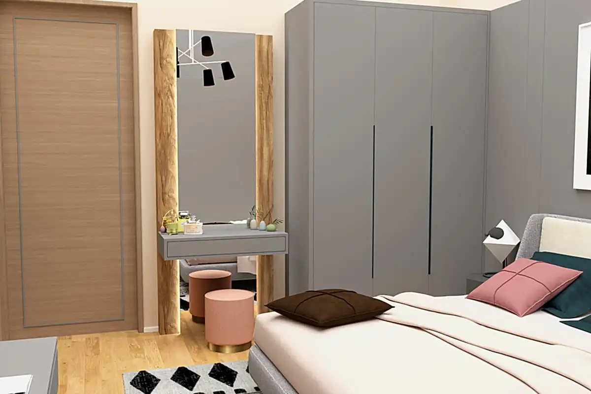 İster tek modül isterseniz de iki dolap arasında tasarlanabilir, ışıklı makyaj masamıza uygun olarak dolap, karyola, şifonyer ve komodin gibi tamamlayıcı ürünler üretilebilmektedir.