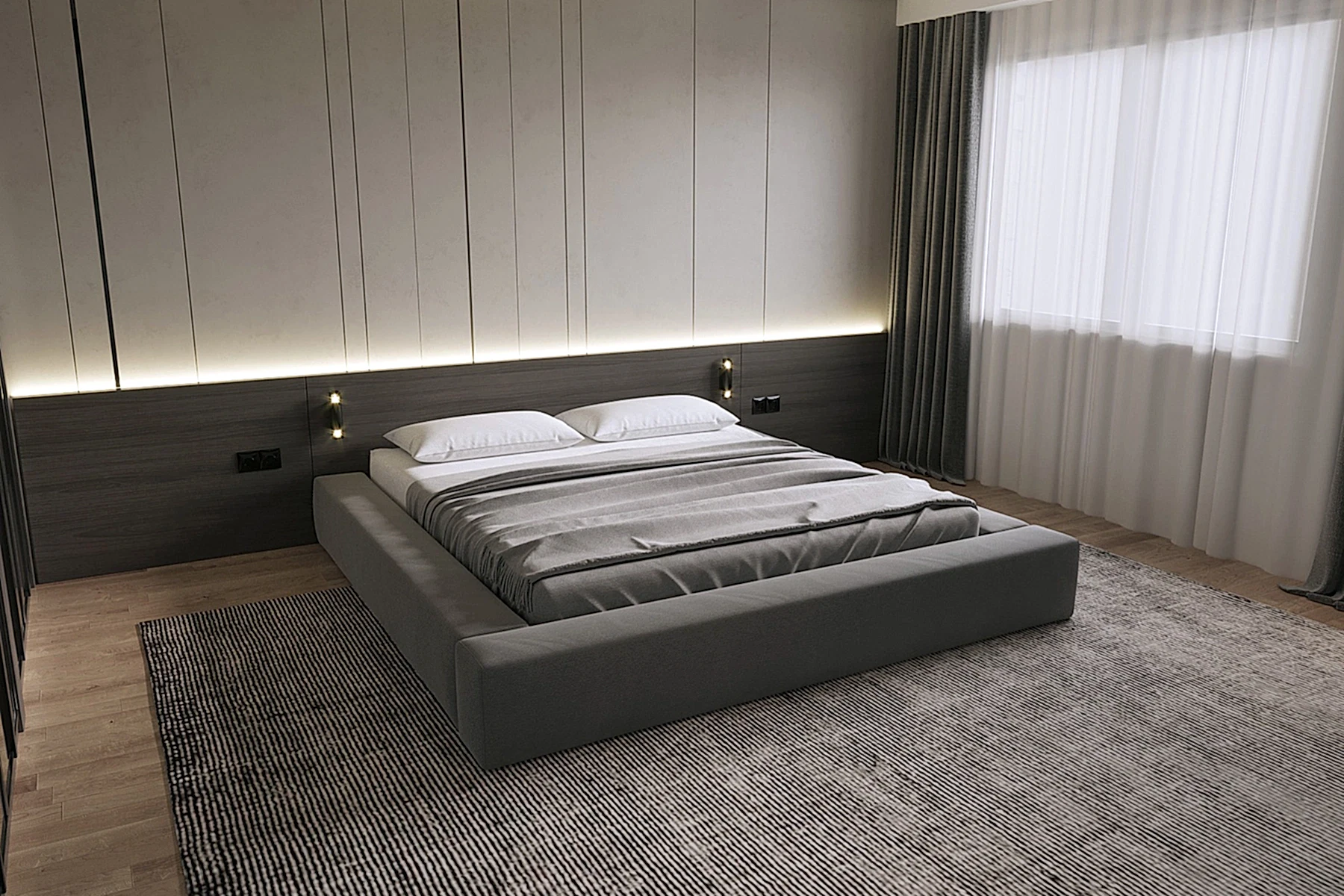 Alçak yere yakın kumaş döşeme karyola, istediğiniz kumaş türü ve renge göre siparişe özel olarak üretilir. Tüm çift kişilik veya daha büyük yatak ölçülerinde üretilebilir.
