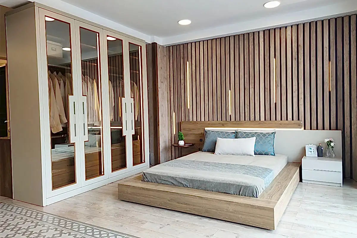 Yatak başlığında kullanılan dokunmatik led ışığı şıklığı ve işlevsel kullanımı bir arada sunar.